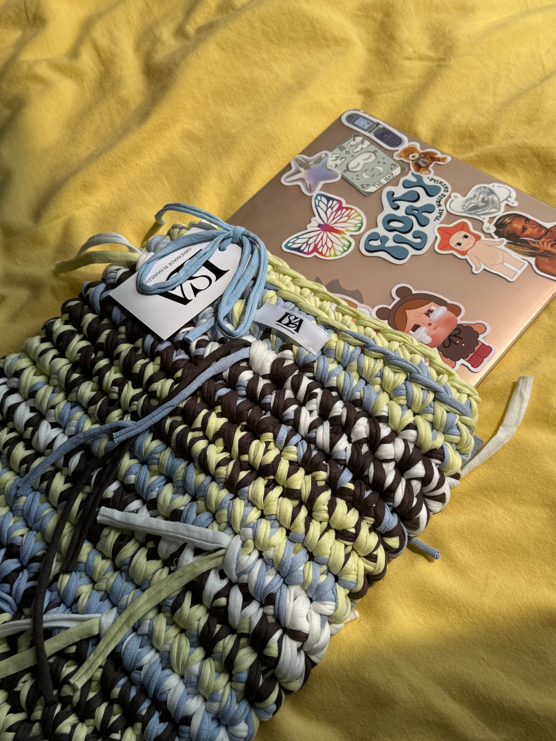 This laptop case is made out of recycled cotton yarn & perfect to complete your outfit. This laptop sleeve has a bow to make sure your belongings are safe.
